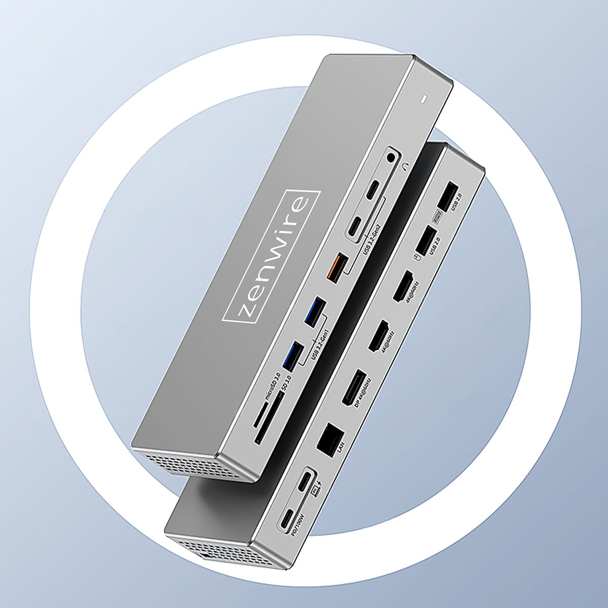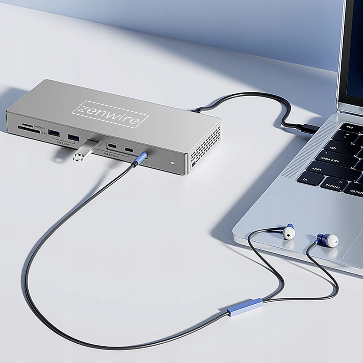 Продукт за най-взискателните Premium потребители. Висококачествен, усъвършенстван адаптер 16в1 от полската марка ZENWIRE. Позволява едновременна работа на до 3 монитора в 4K 60Hz, а вградените 16 порта осигуряват достъп до всички най-необходими функции.