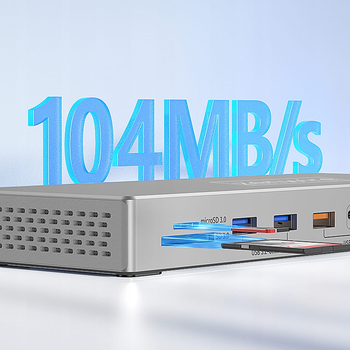 - ✅ Бърз четец за карти 3.0 SD + TF – скорости до 104MB/s; поддръжка на едновременно четене от двете карти.