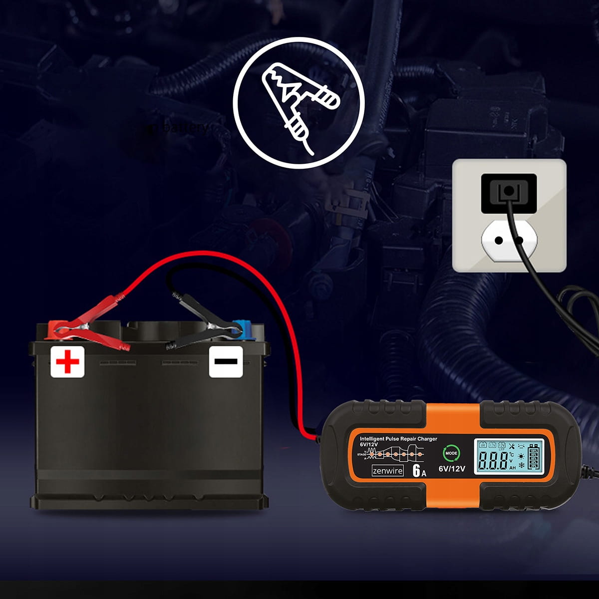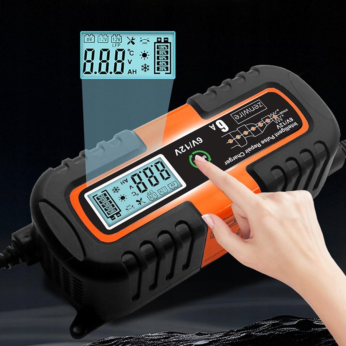 Зарядно устройство за акумулатор 6V/12V с LCD дисплей, функция за ремонт, микропроцесорно управление и летен/зимен режим – Zenwire JMD-6S