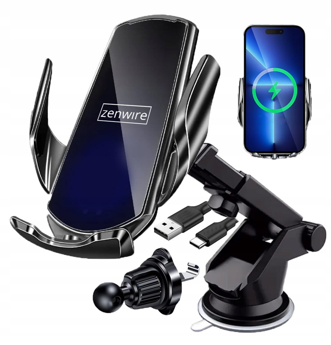 Uchwyt na Telefon do Samochodu z Ładowarką Indukcyjną Szyba Kratka Kokpit Zenwire W30 - zdjęcie 1