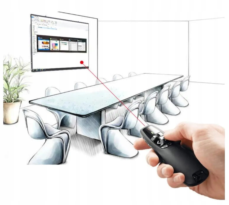 Лазерната показалка с обхват до 12 метра е проектирана така, че да помогне за представянето на всяка презентация. Червеният лазер се вижда лесно на всяка прожекционна повърхност, като осигурява свободно движение из стаята и правилен контакт с аудиторията.