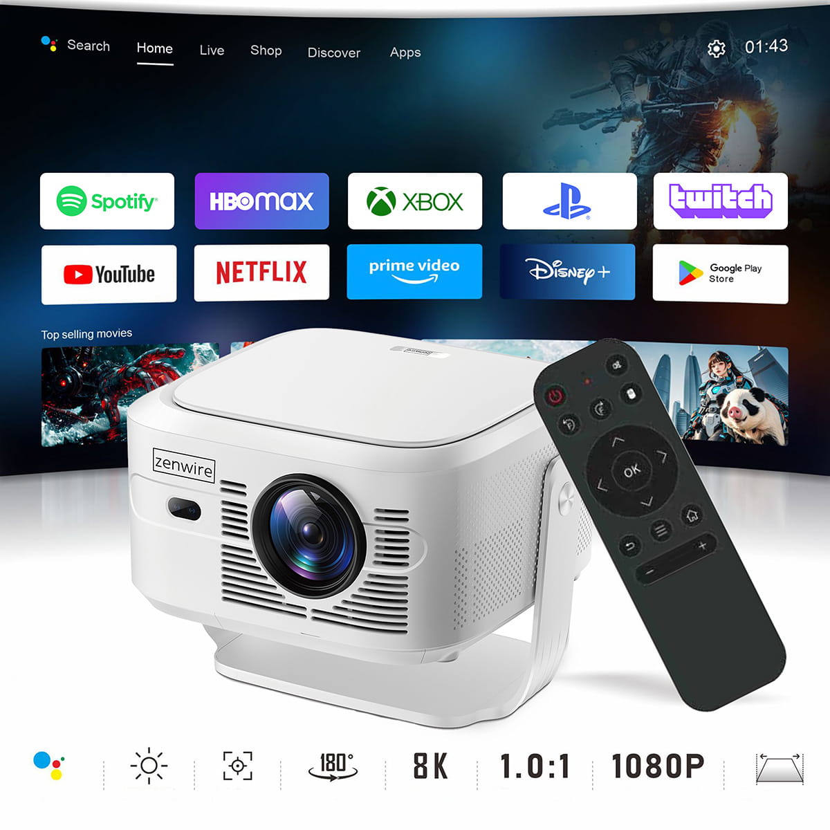 Мини Преносим Проектор Android 14 WiFi Full HD 4K 8K за Телефон Zenwire PrimeView IMC460 Pro