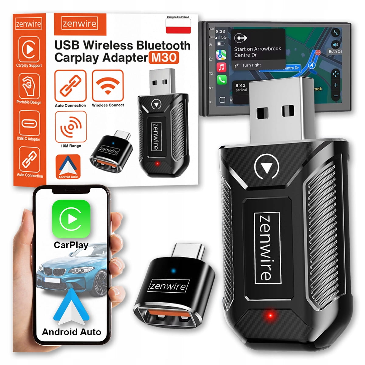 - Адаптер CarPlay / Android Auto USB Zenwire® M30