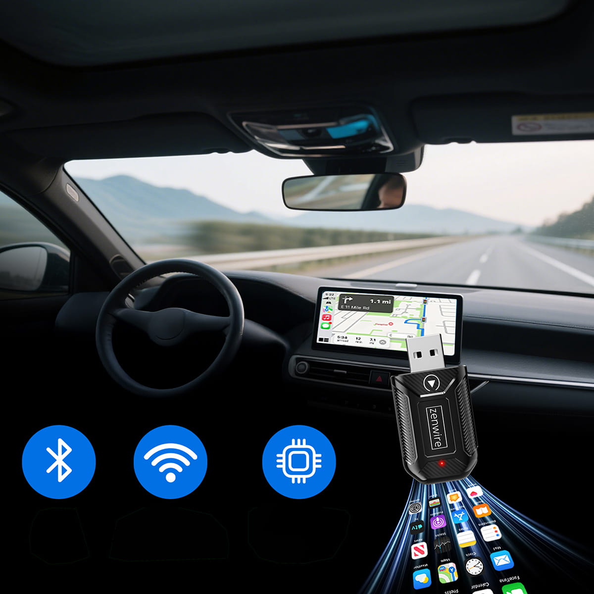 ✅ Превърнете кабелния CarPlay/Android Auto в напълно безжично решение! Адаптерът Zenwire® M30 ви позволява да използвате CarPlay и Android Auto без кабели.