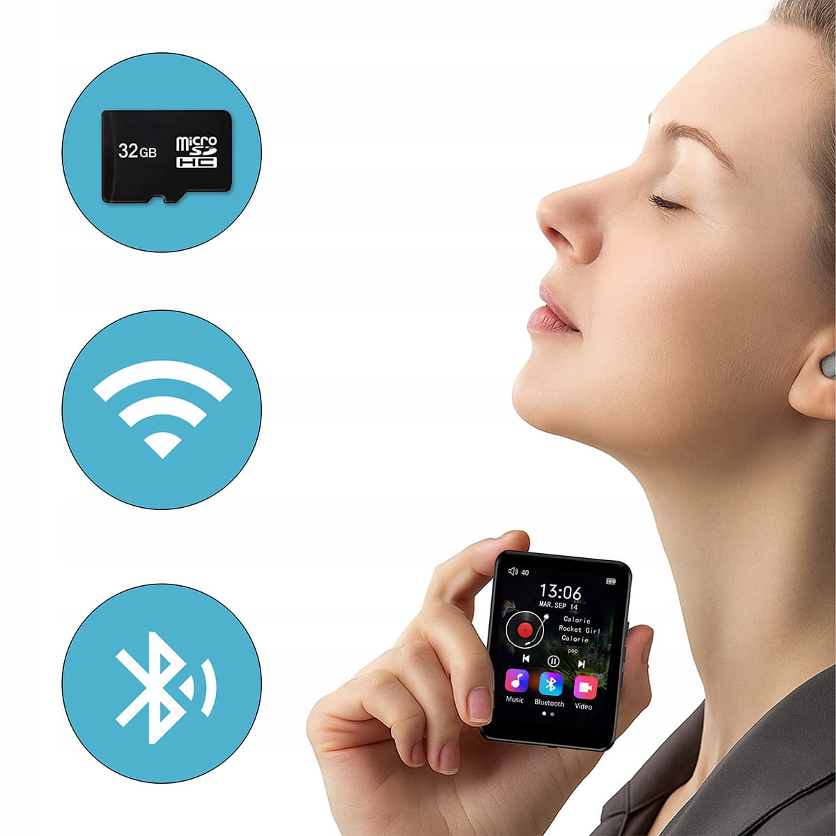 - ✅ Голяма обща памет от 36 GB – вградени 4 GB + microSD карта 32 GB (включена в комплекта). Можете да съхранявате хиляди песни, аудиокниги и файлове.