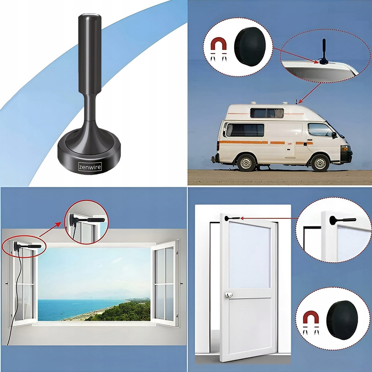 DVB-T2 H.265 HEVC антена с усилвател за тунер и телевизор, магнитна основа, USB захранване – Zenwire HDAT20