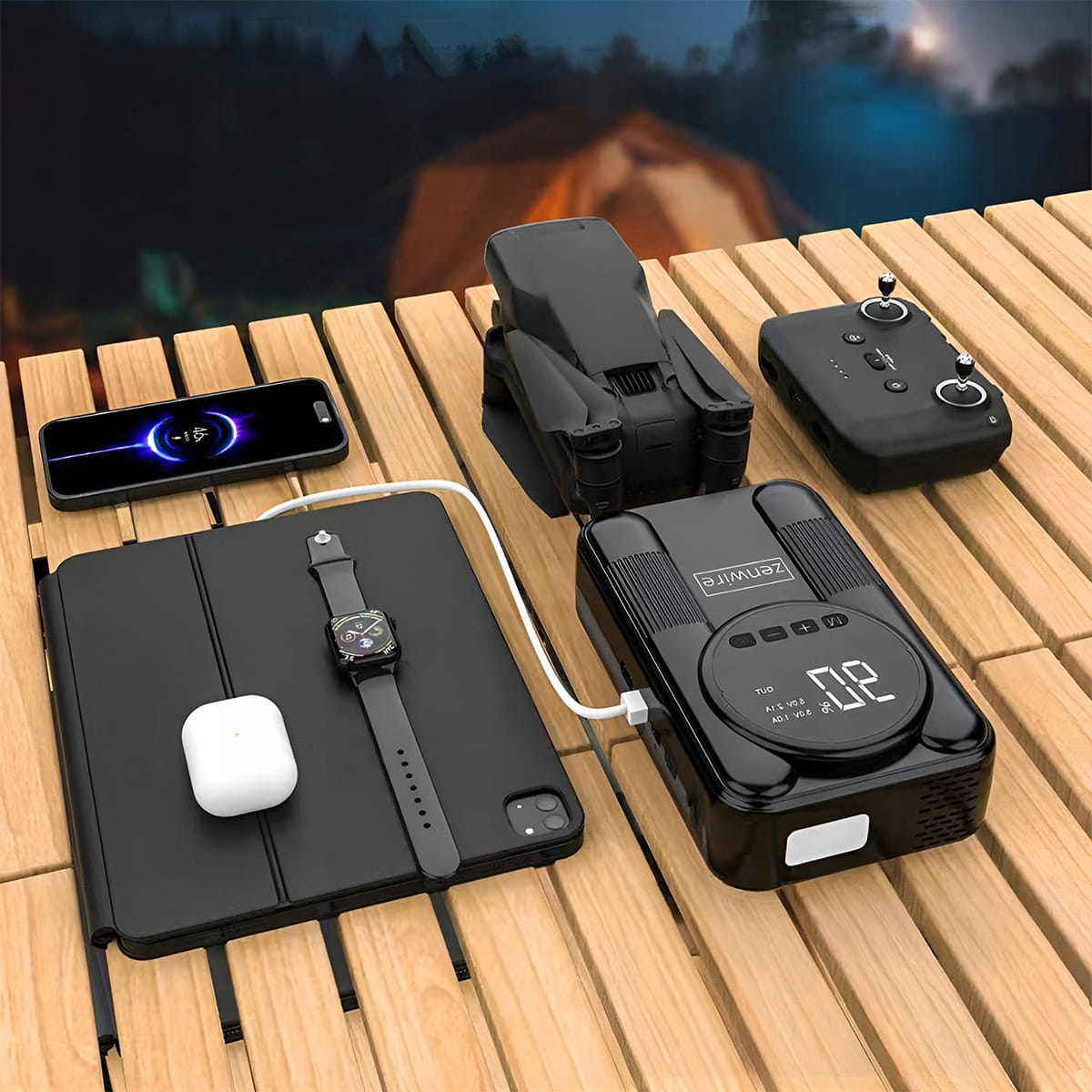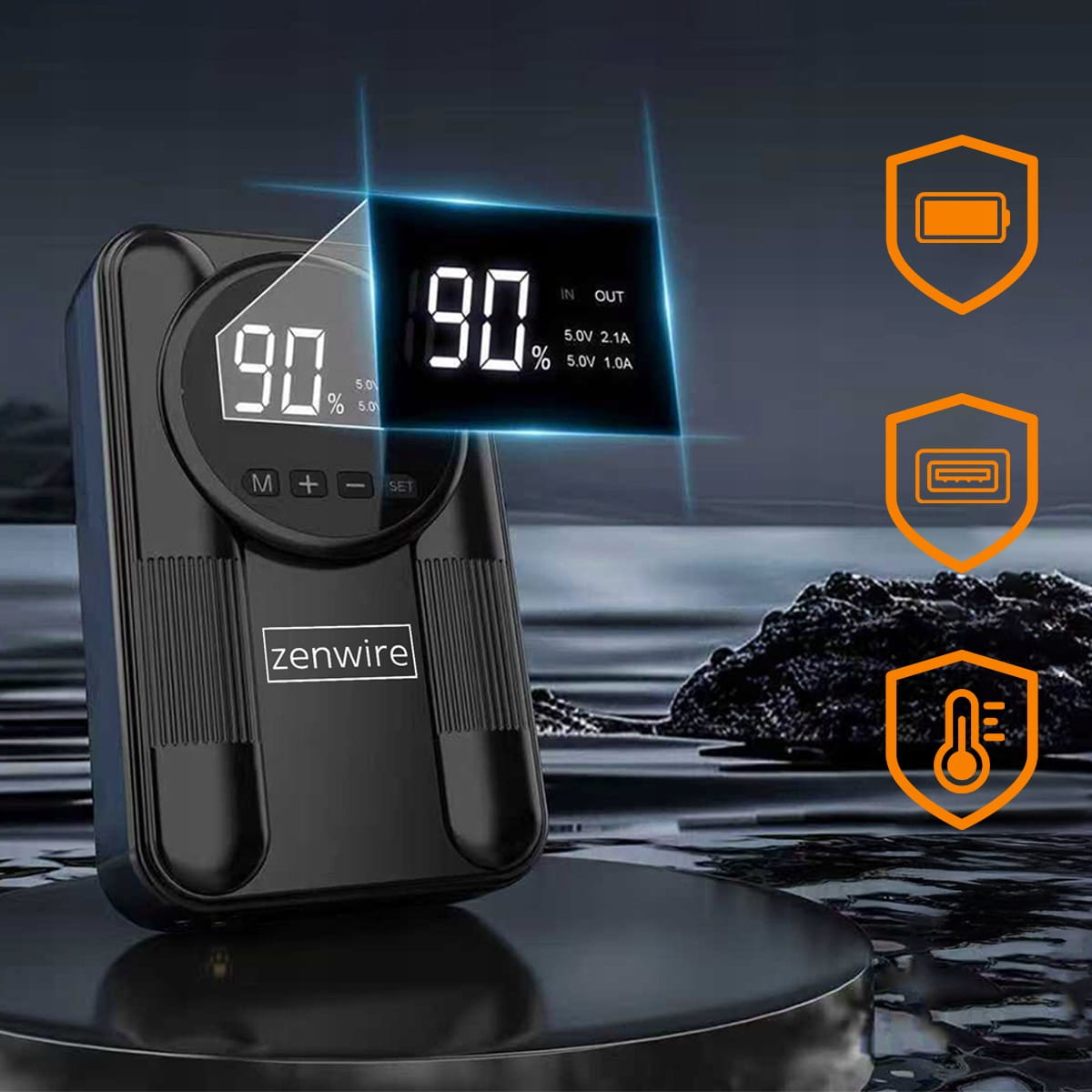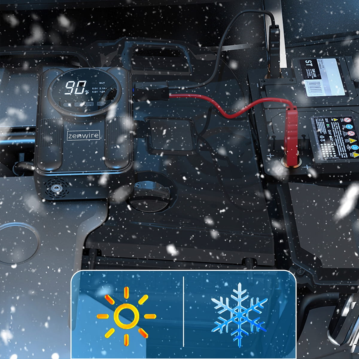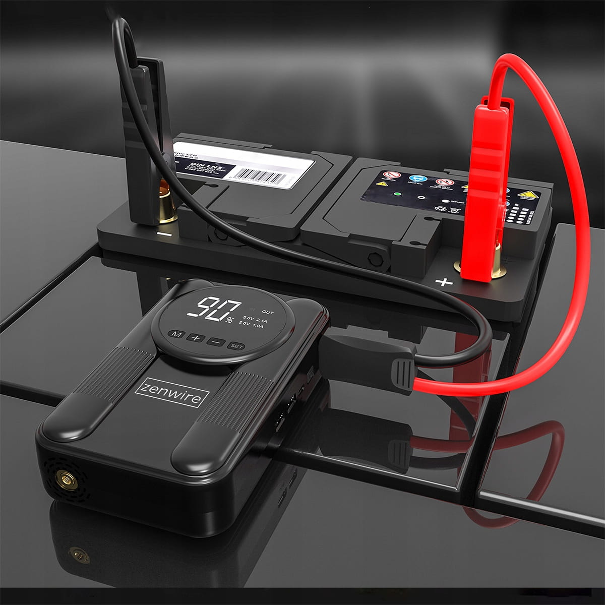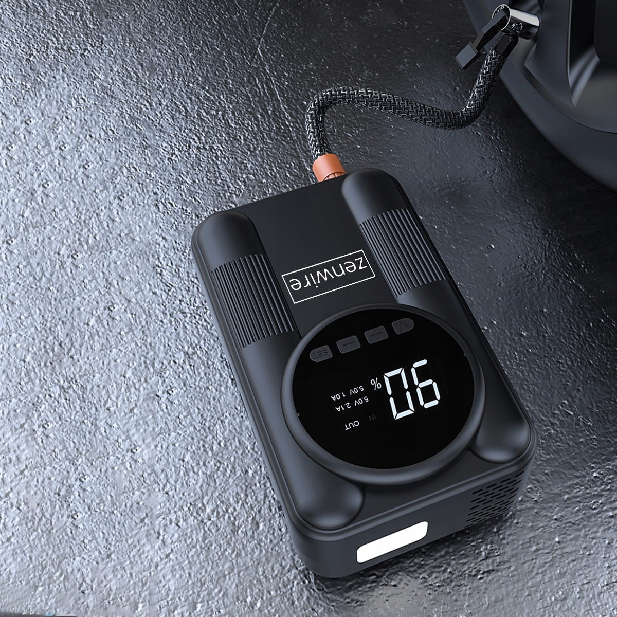 Zenwire CYD14 е аварийно устройство, което комбинира мощен 12V стартер за кола и компресор с високо налягане от 150 PSI. Проектирано като надеждна помощ в извънредни ситуации, то позволява бързо стартиране на автомобила и незабавно помпане на гуми – всичко в едно компактно устройство. Освен това функционира като Powerbank и фенерче. В комплекта ще получите всичко необходимо, включително функционален калъф от EVA материал, щипки за акумулатор, USB-C кабел за зареждане, аксесоари за компресора с накрайници.