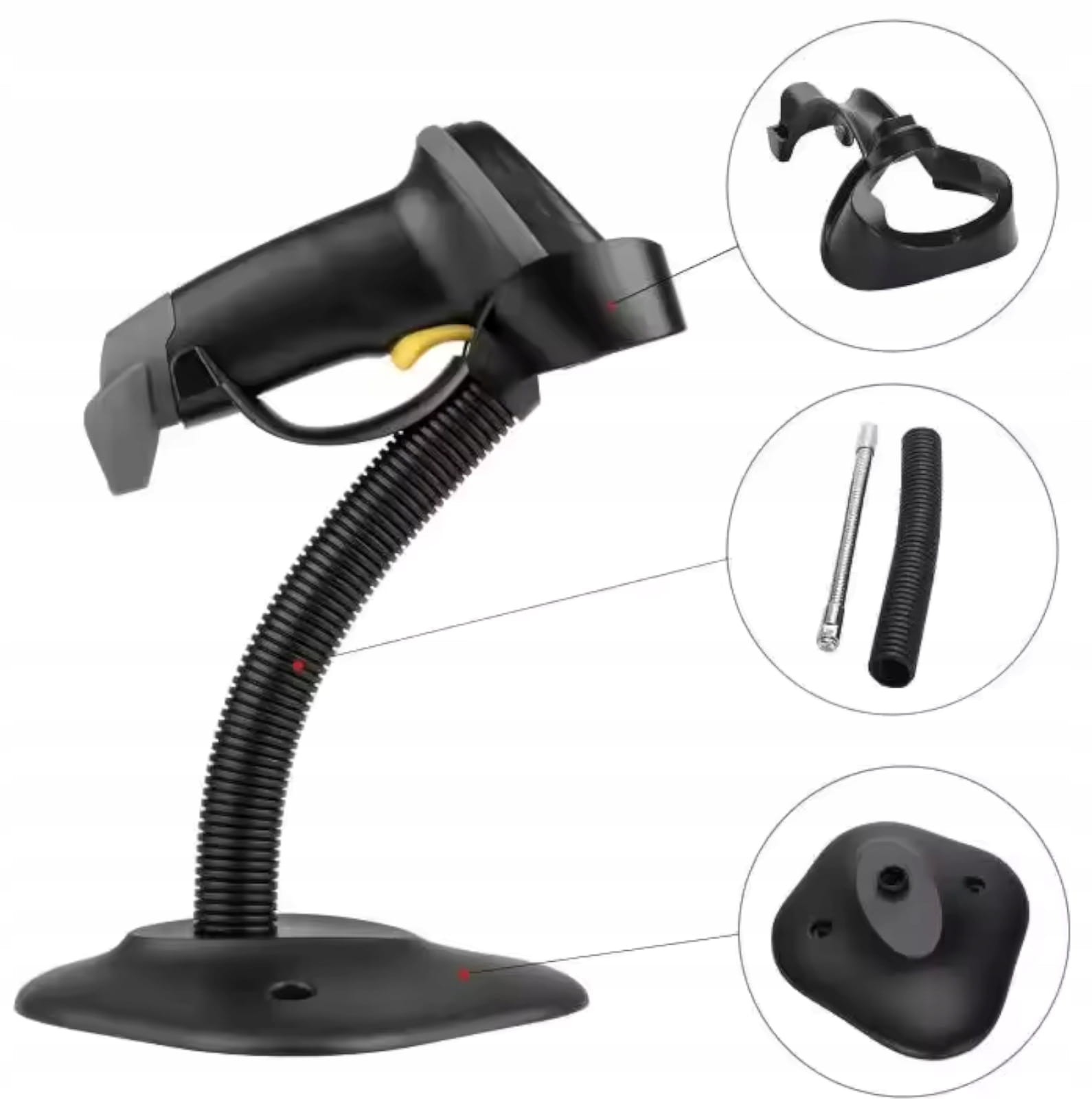 Стойката на баркод скенера се характеризира с изключителна универсалност, което я прави съвместима с повечето модели скенери, предлагани на пазара, независимо от размера или типа.